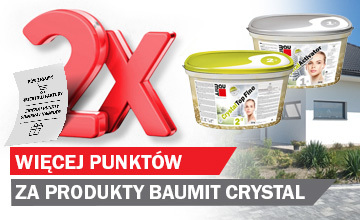 Rozdajemy dodatkowe punkty w Baumit Klub! Kup Baumit CrystalTop lub Baumit CrystalActivator od 1 sierpnia do 31 października i zarejestruj fakturę, a na Twoje konto trafi 2 x więcej punktów!