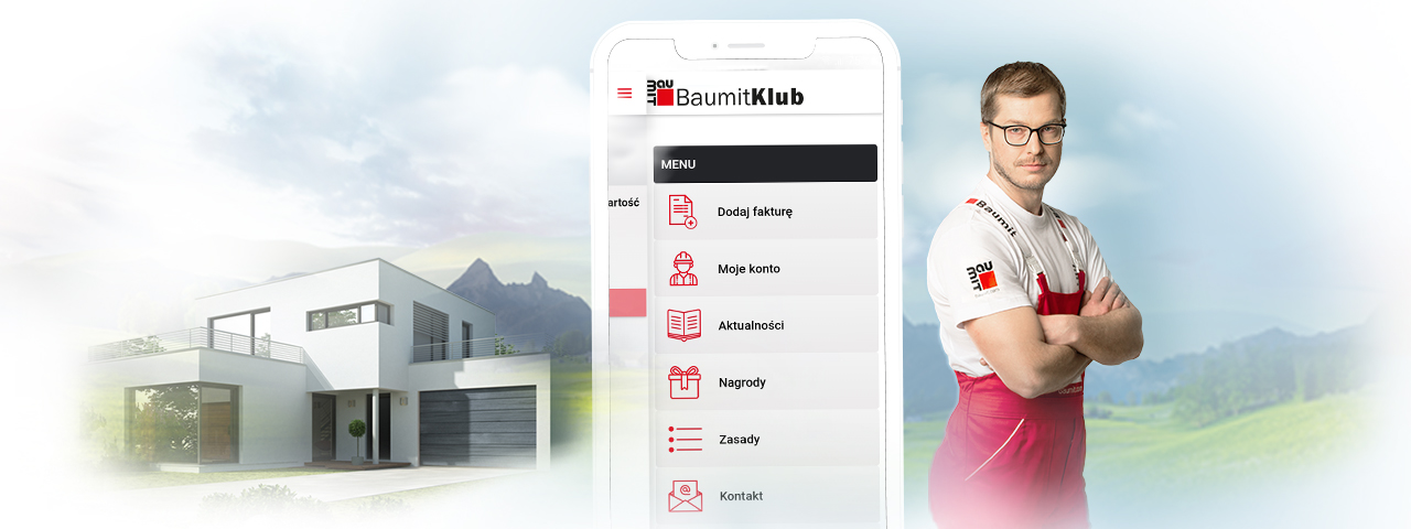 Dlatego, aby jeszcze bardziej ułatwić Ci korzystanie ze wszystkich funkcji programu stworzyliśmy aplikację mobilną Baumit Klub.